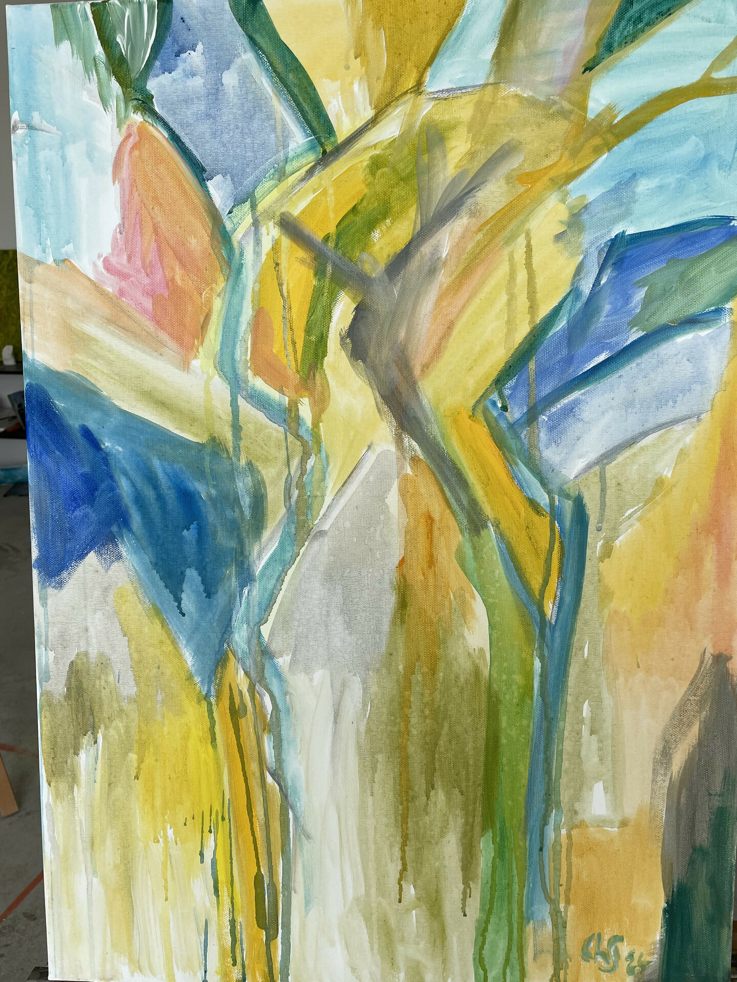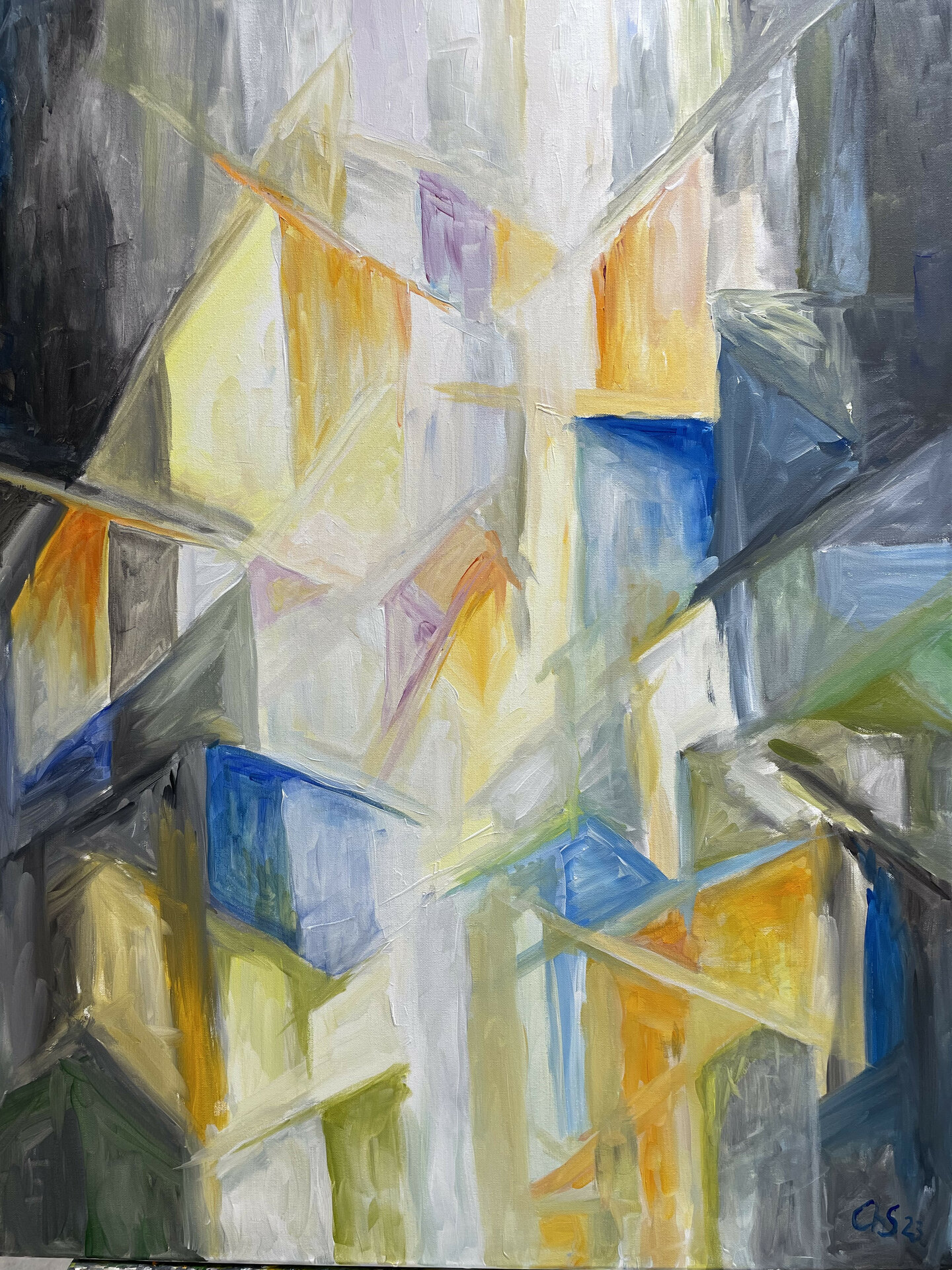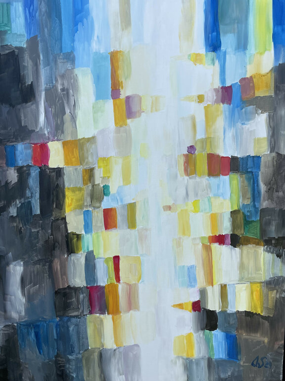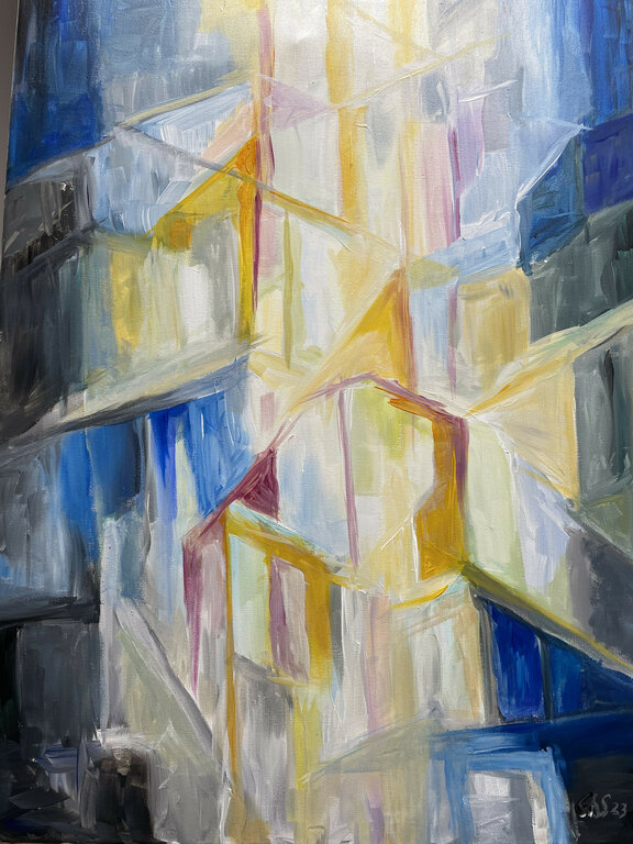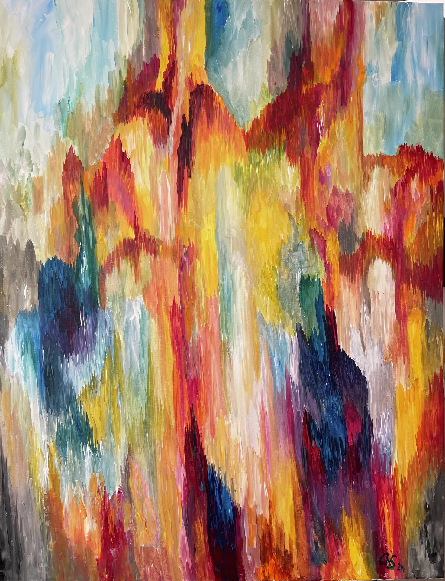 Kathedrale in Rot, Orange, Blau, 2024, 80x100cm