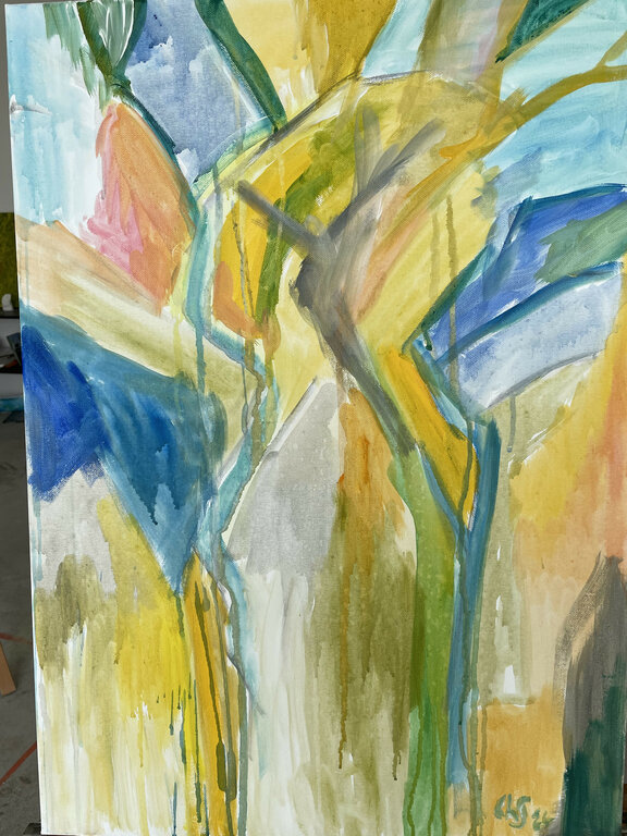Kathedrale in Rot, Blau, Orange, 2024,80x100cm
